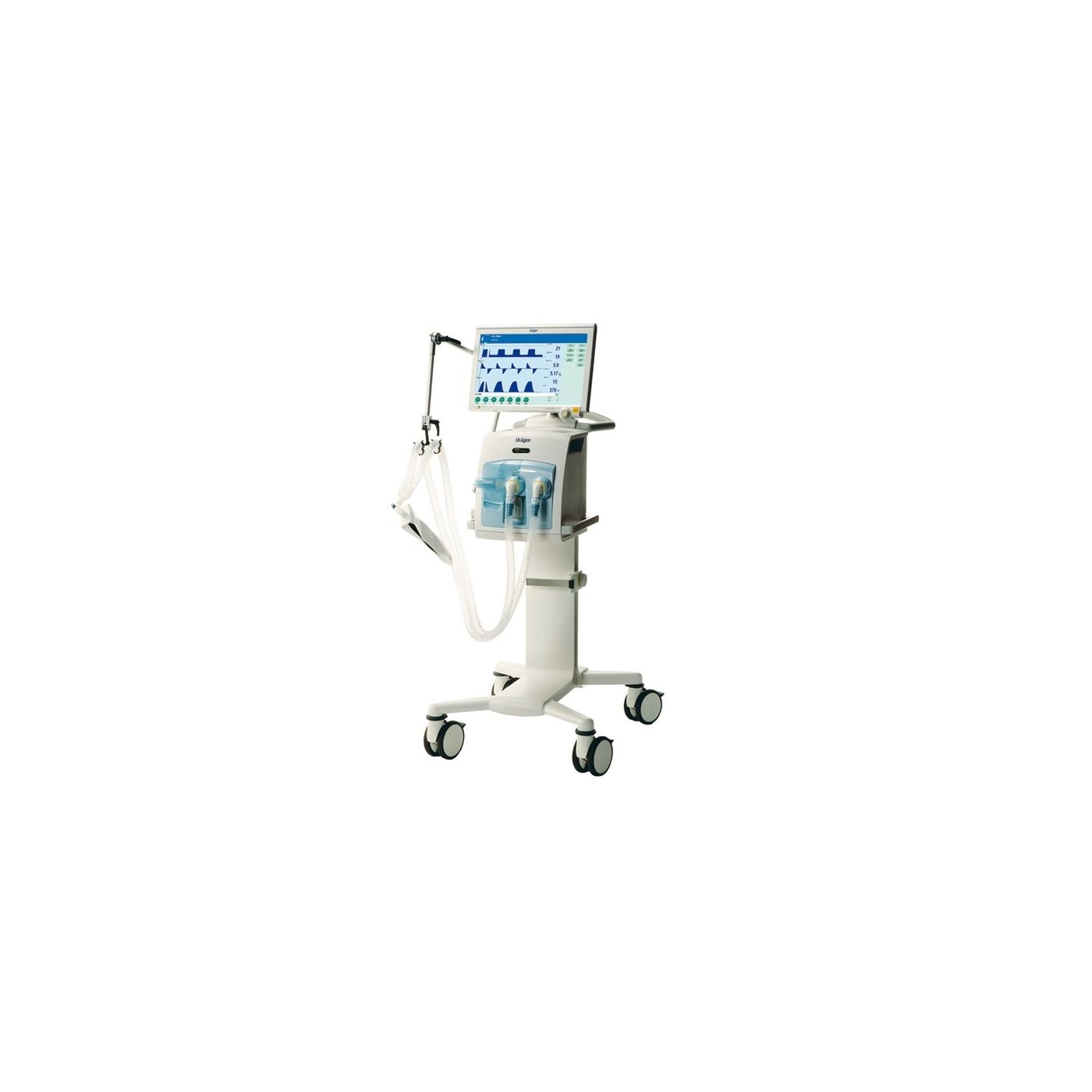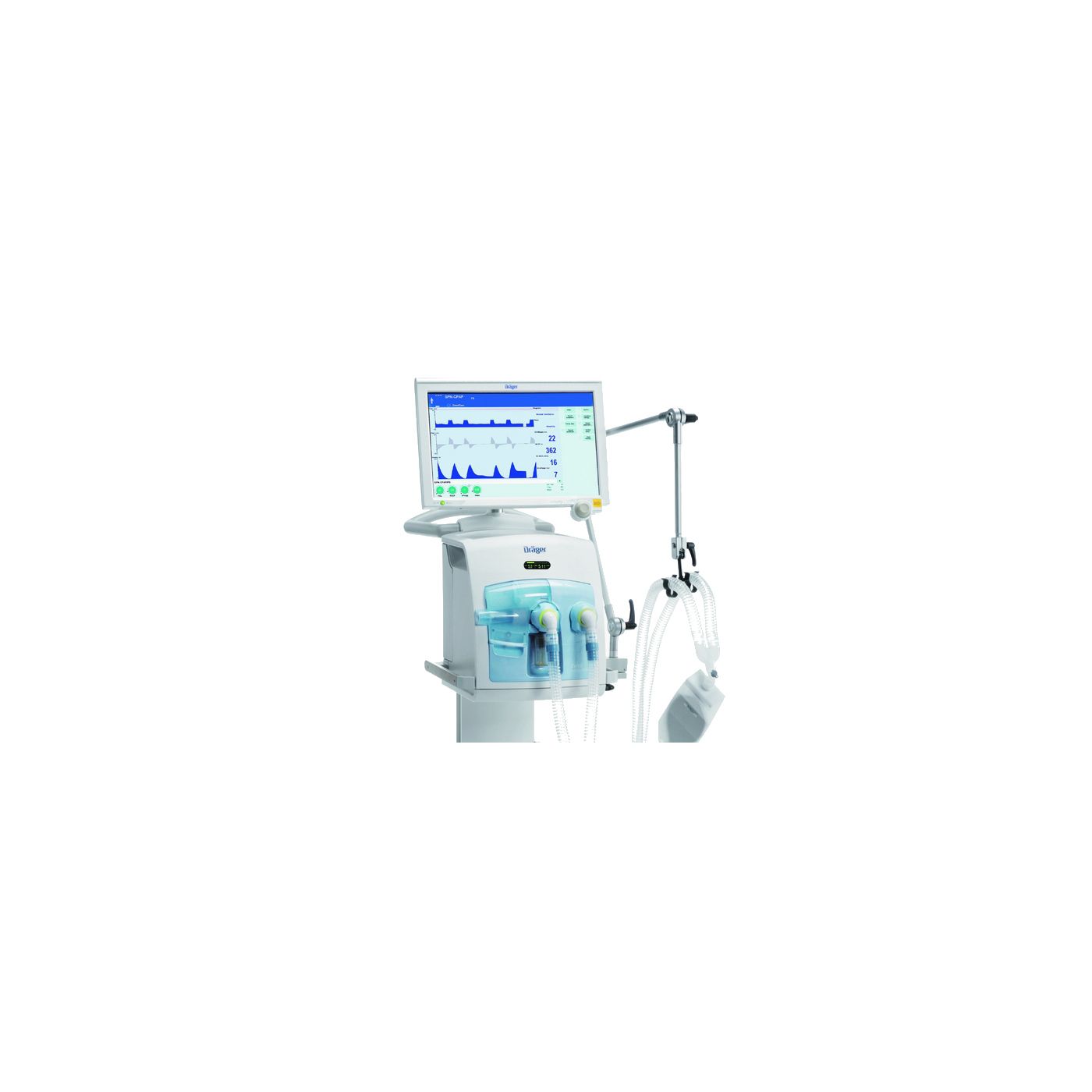Smart Pulmonary View в реальном времени визуализирует функцию дыхания. Трансформируя данные в удобные визуальные образы, эта опция помогает снижать нагрузку на персонал. Будучи оснащенным основанной на RFID технологией Infinity ID, V500 готов использовать соответствующие аксессуары Dräger.