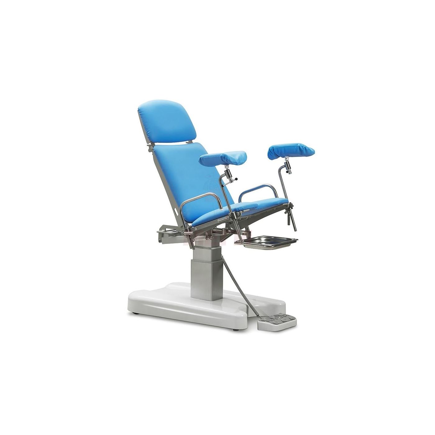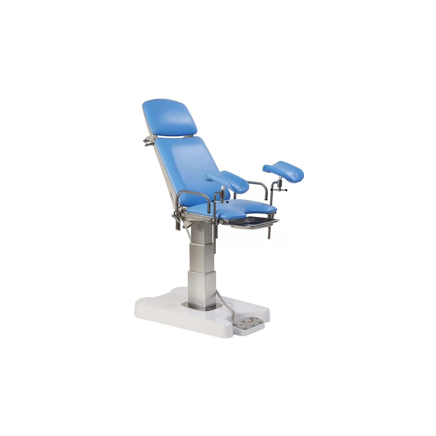 - Для изменения высоты кресла используется электрическая подъемная колонна, регулирование параметров осуществляется с помощью ножной педали управления