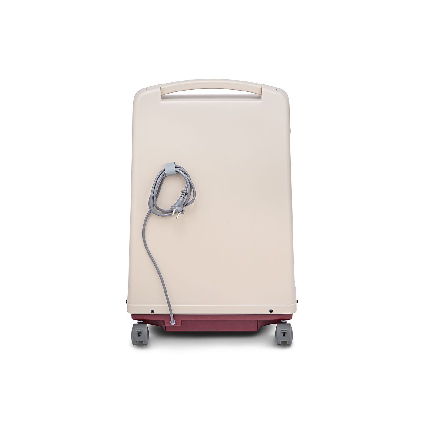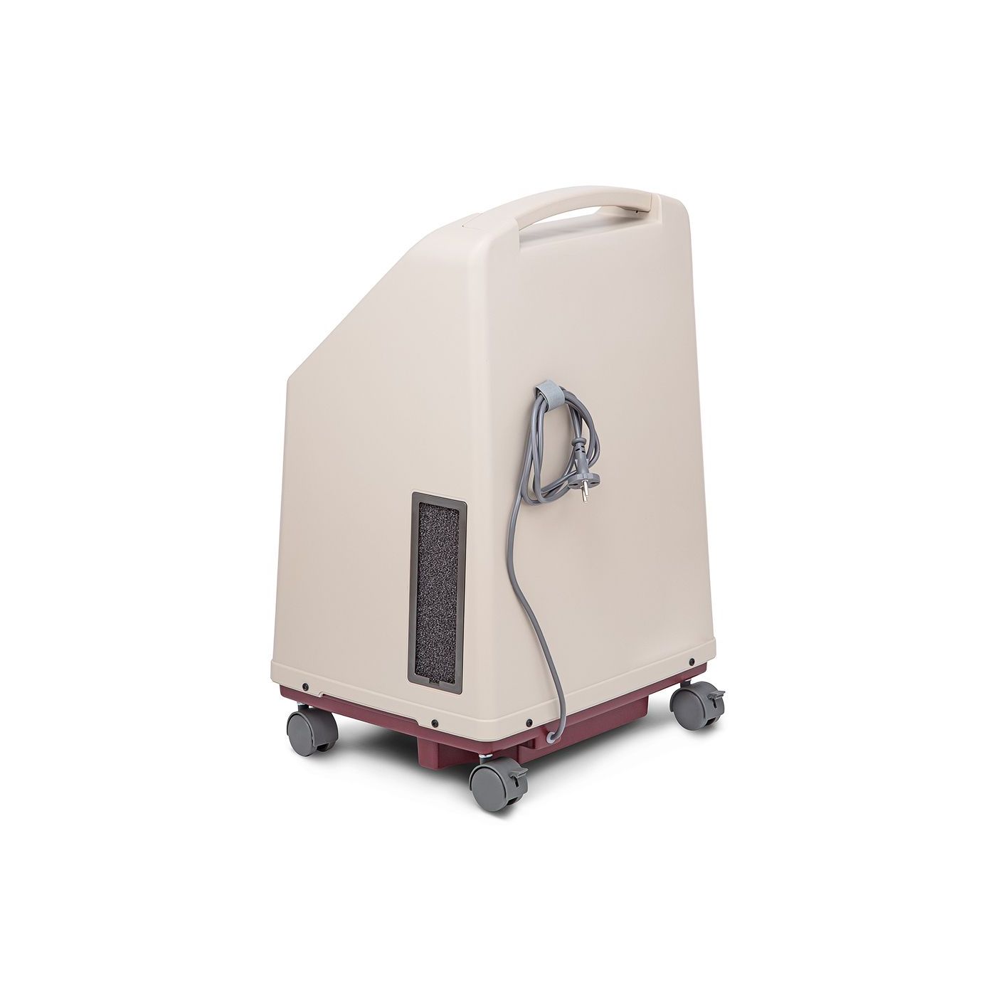Корпус концентратора кислорода выполнен из надежного ударопрочного пластика и снабжен удобными боковыми ручками, а также колесными опорами для легкого перемещения по дому.