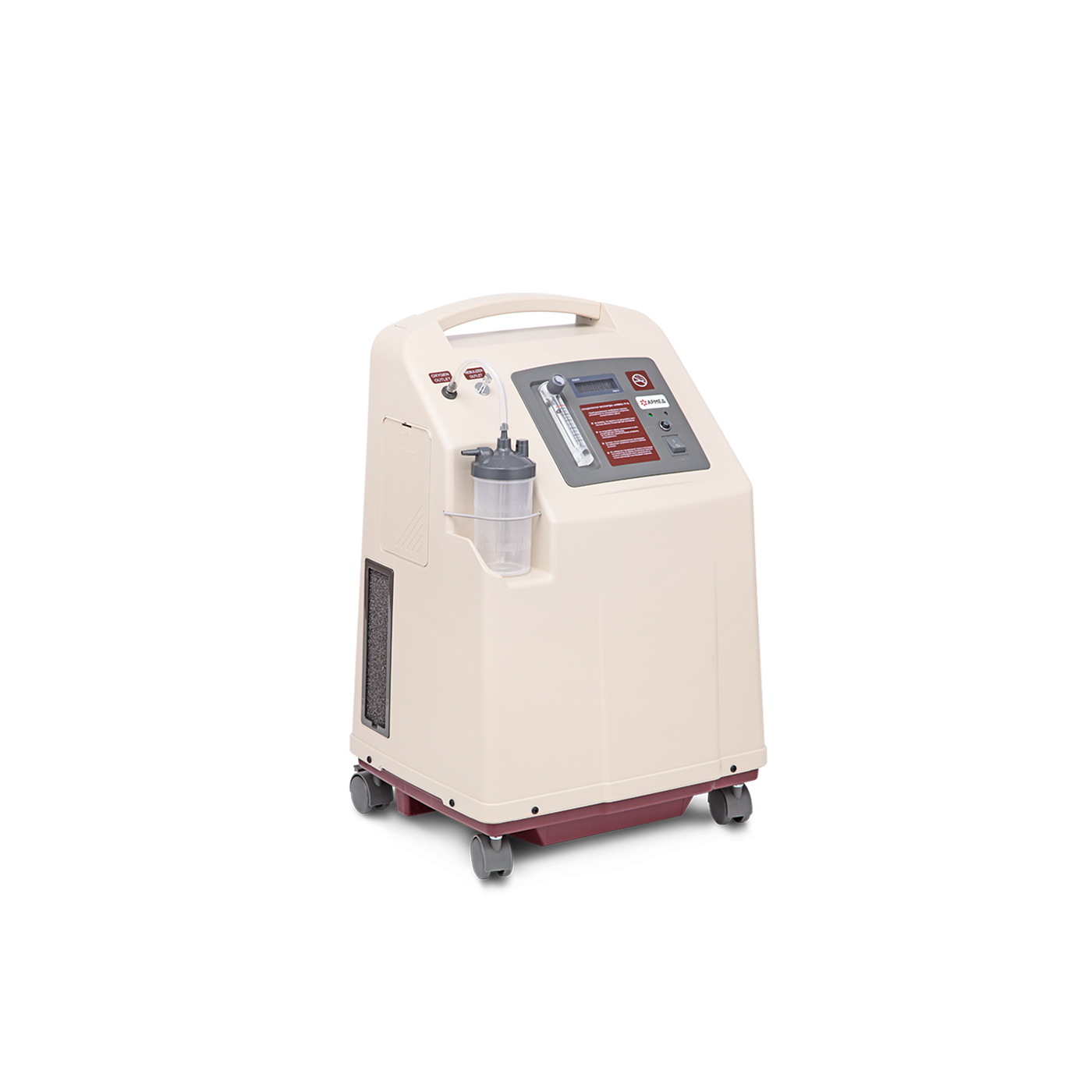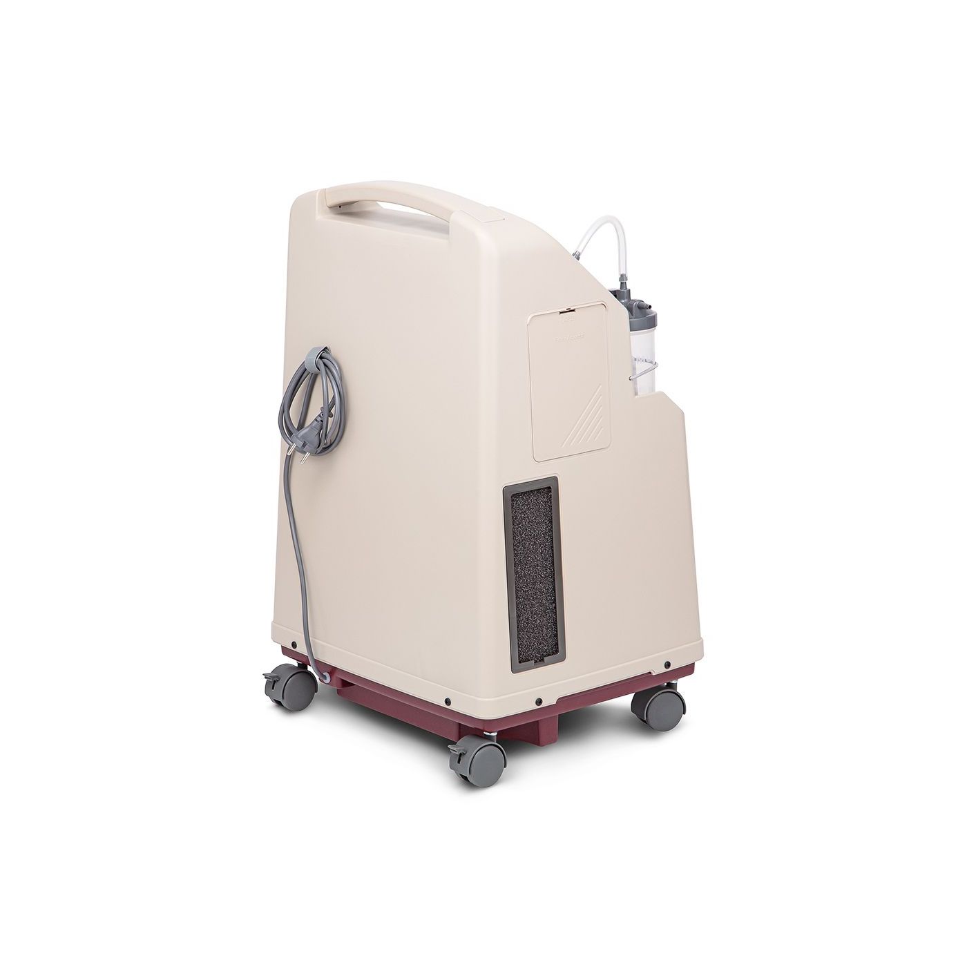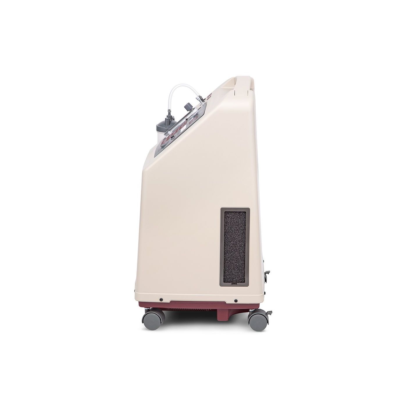 Выполнен в классическом стиле с простой панелью управления. Дополнительно оснащен специальным выходом для ингаляций. На дисплее отображается время работы концентратора в часах и минутах. Скорость движения воздушно-кислородной смеси легко настраивается механическим регулятором, расположенным слева. Пятилитровый кислородный концентратор Армед используется для лечения заболеваний дыхательных путей и применяется преимущественно в медицинских учреждениях. Маневренные колеса позволяют перемещать аппарат.