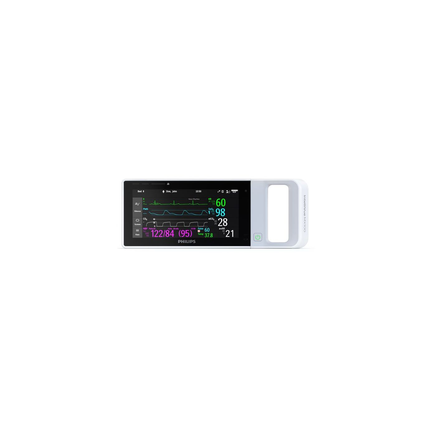 IntelliVue MX100 – это гибкий и надежный способ наблюдения за пациентами в движении – и у постели больного – с помощью одного портативного автономного монитора. Небольшой и легкий, аппарат предлагает широкий масштабируемый набор клинических измерений.