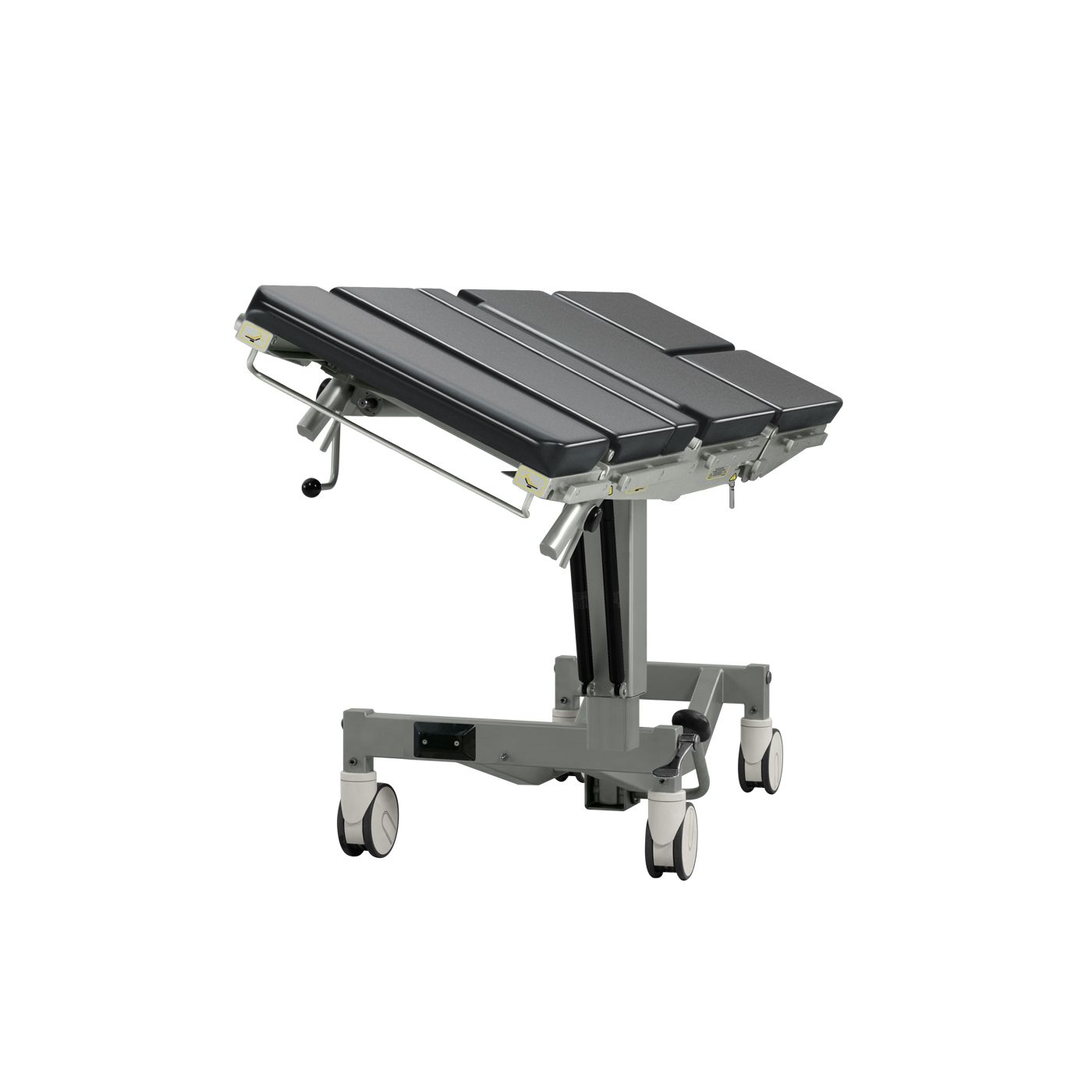 Изменение продольного наклона (Тренделенбург и Анти-Тренделенбург) осуществляется благодаря газовым пружинам. Изменение этой позиции защищено дополнительной кнопкой отключения блокировки.