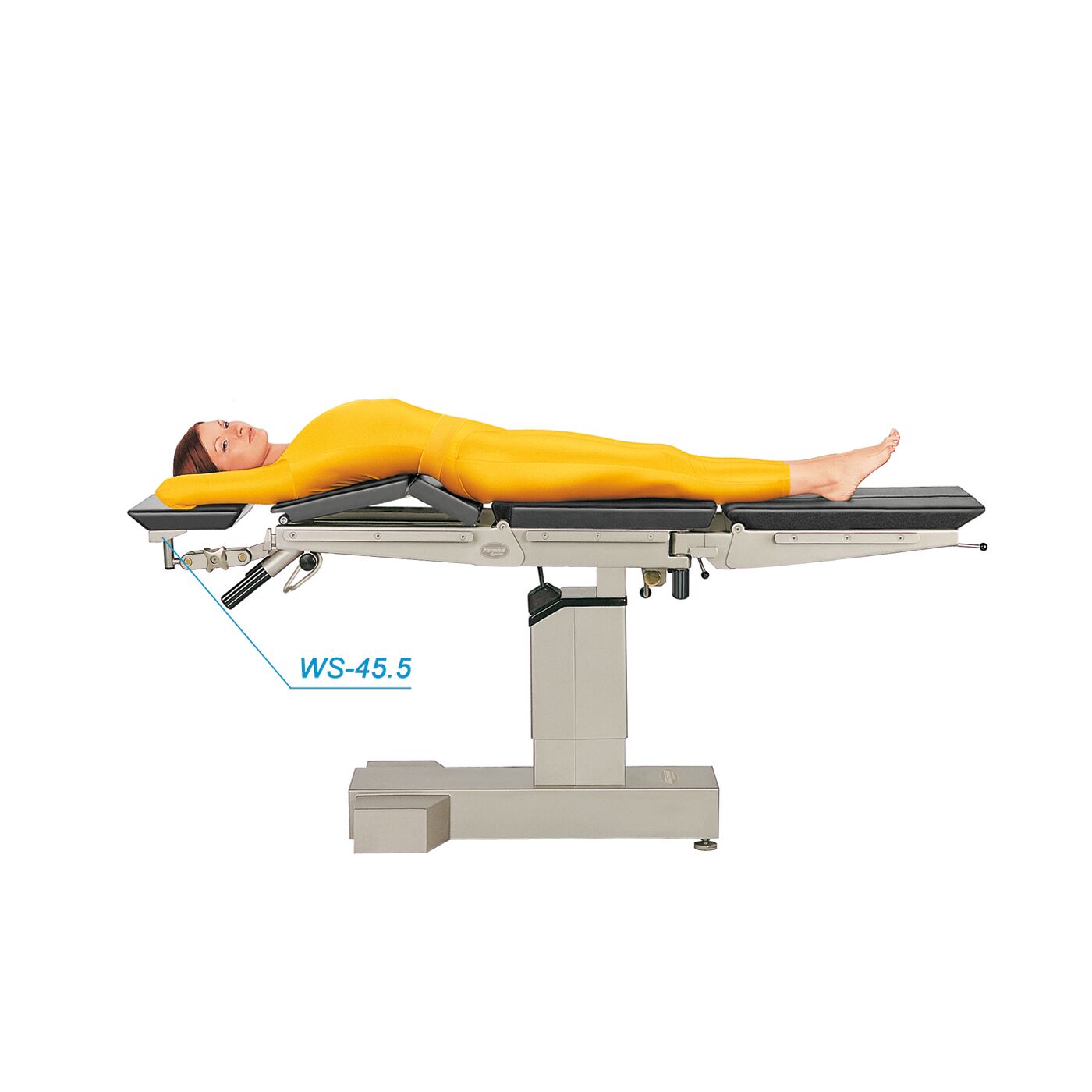 Операционный стол SU-02, несмотря на отсутствие электрического управления, предлагает вам множество настроек положения, что позволяет вам адаптироваться ко многим типам операций.