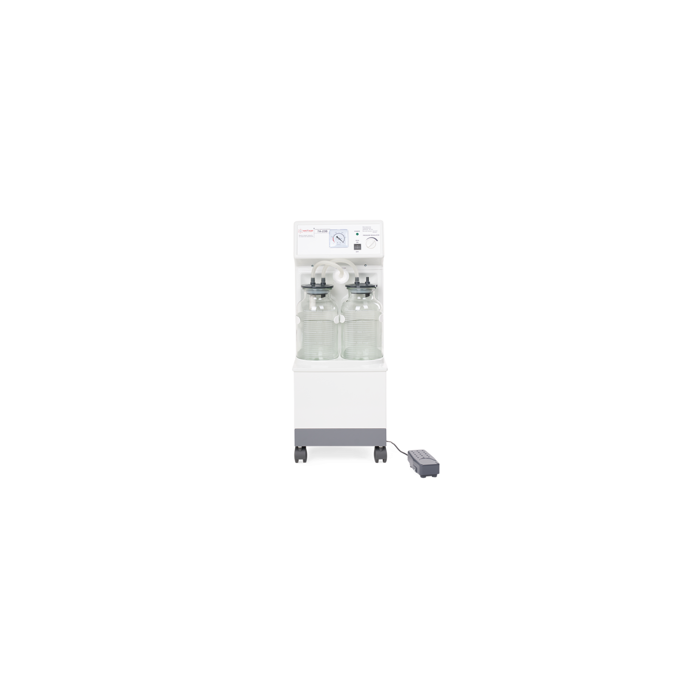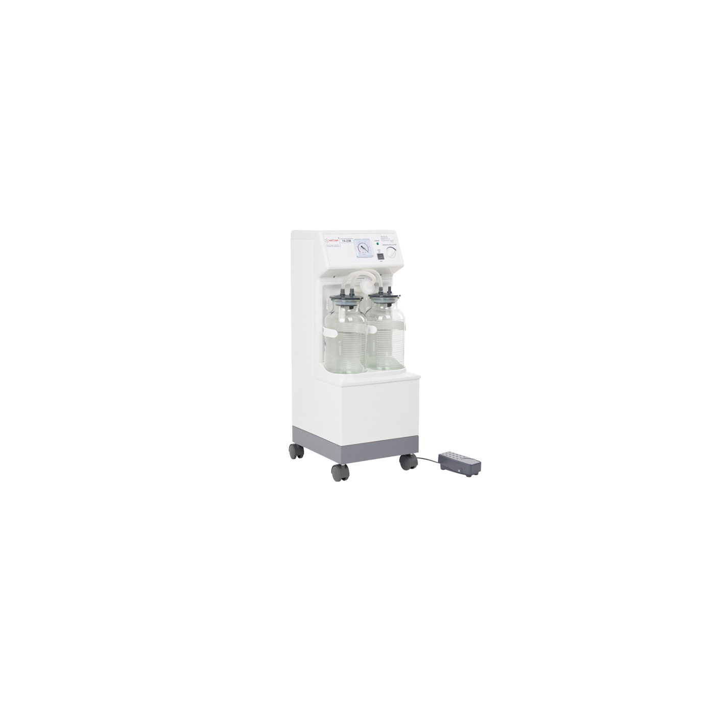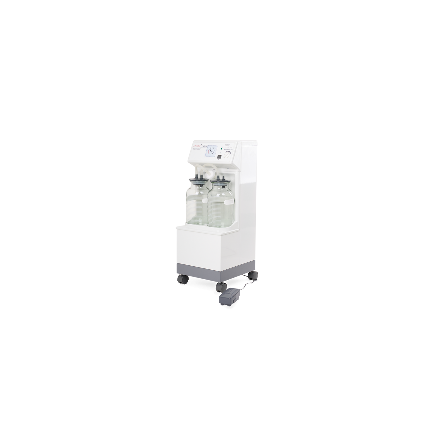 Передвижной хирургический отсасыватель в металлическом ударопрочном корпусе. Аппарат рассчитан на непрерывную работу в течение 4 часов. Применяется при проведении длительных операций высокой сложности. Для оперативного дистанционного управления устройством имеется удобная педаль запуска. Устройство комплектуется специальным металлическим наконечником, который необходим для полостных операций.