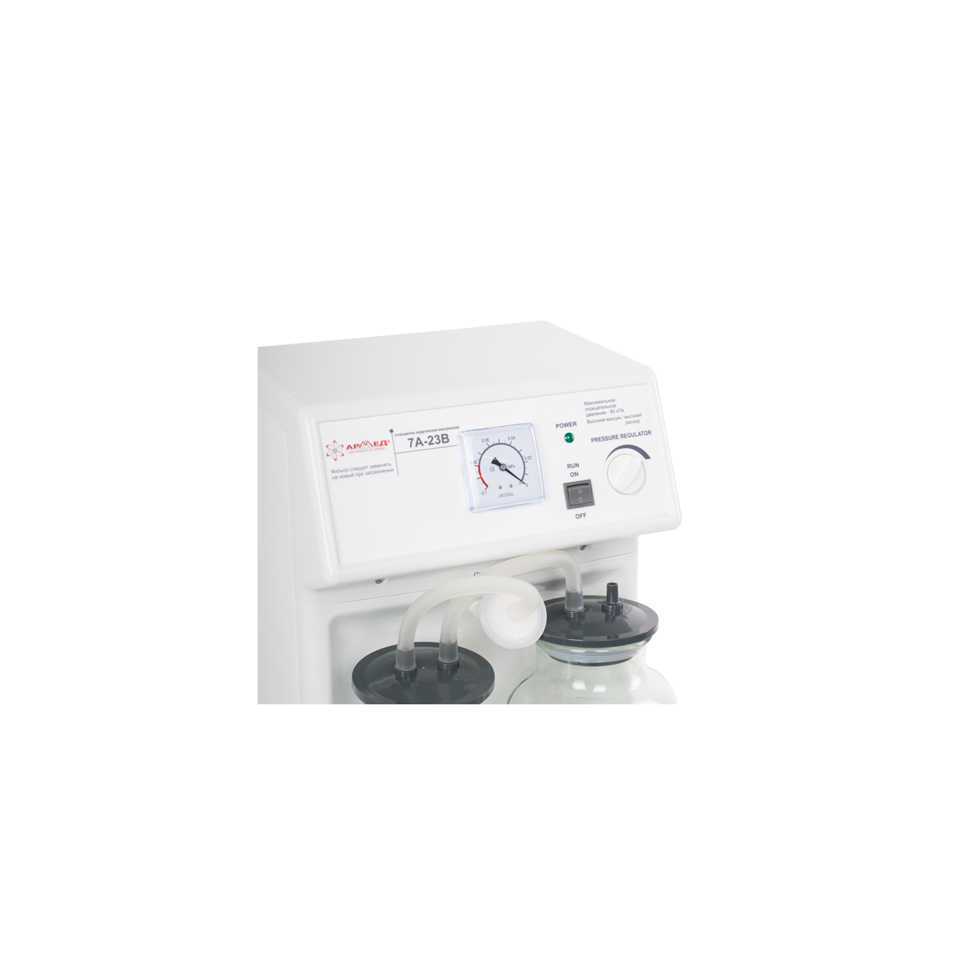 Для предотвращения возможного перелива отсасываемой жидкости на крышке одной из 2-х стеклянных банок-сборников предусмотрено специальное защитное поплавковое устройство.