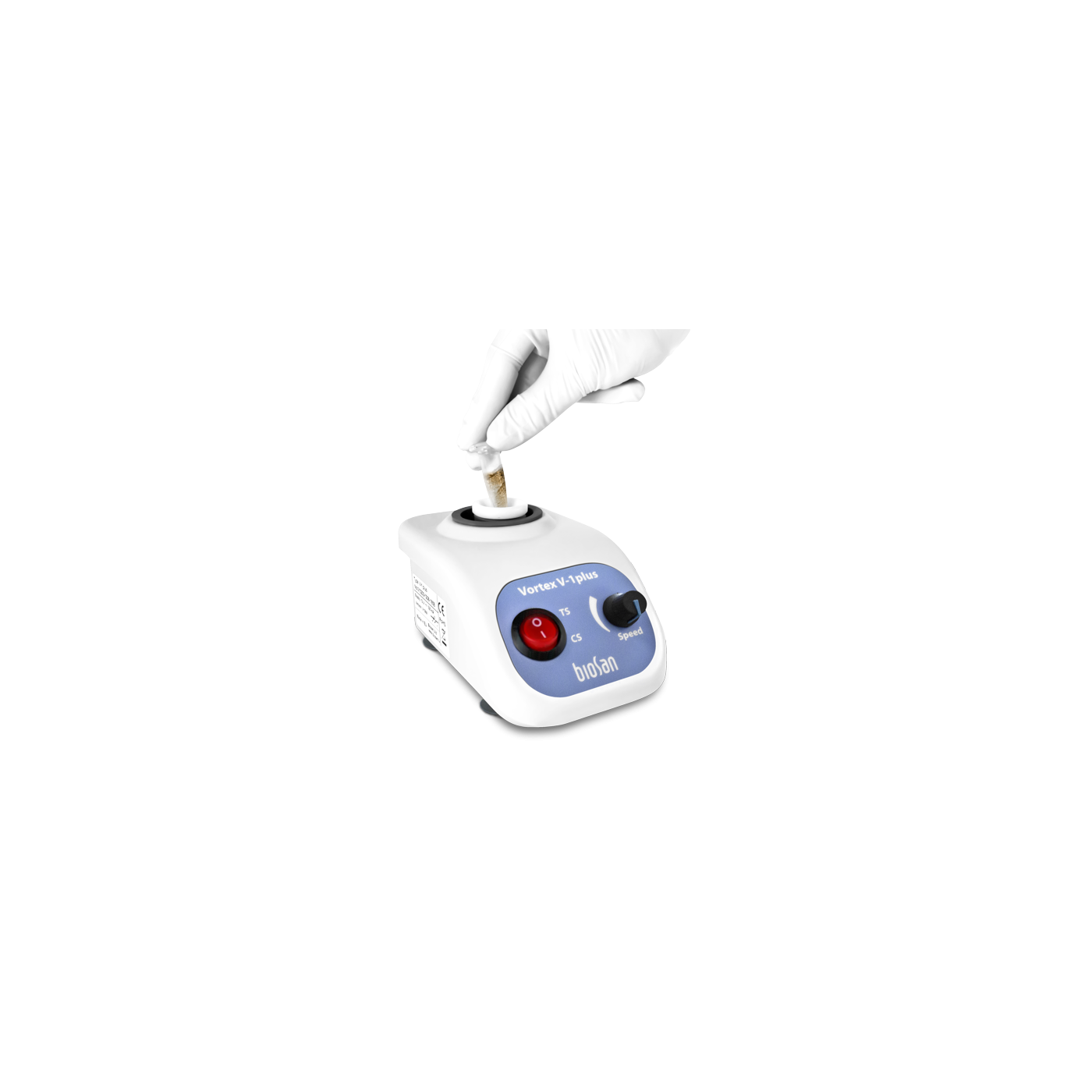 Вортекс V-1 plus предназначен для перемешивания растворов и суспензий клеток в пробирках. Принцип работы основан на действии виброэксцентрика на пробирку.